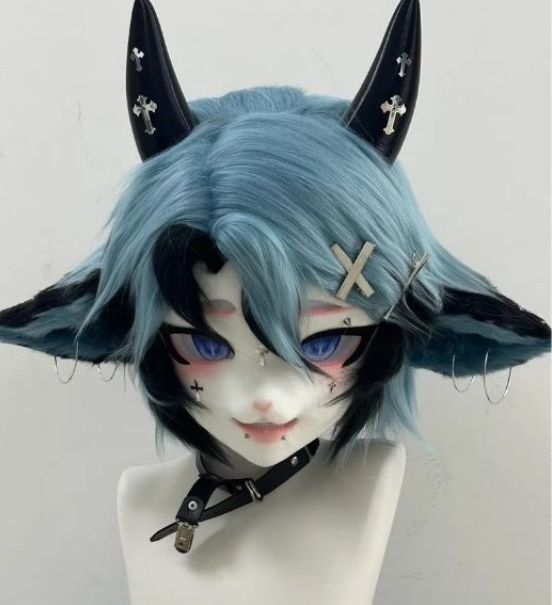 - キャラクターグッズ > その他 > 着ぐるみヘッド 猫全頭 ケモノ マスク コスプレ コスチューム kigurumi 着ぐるみヘッド kigurumi 羊 青 ファースーツ 全頭ヘッド ケモノ